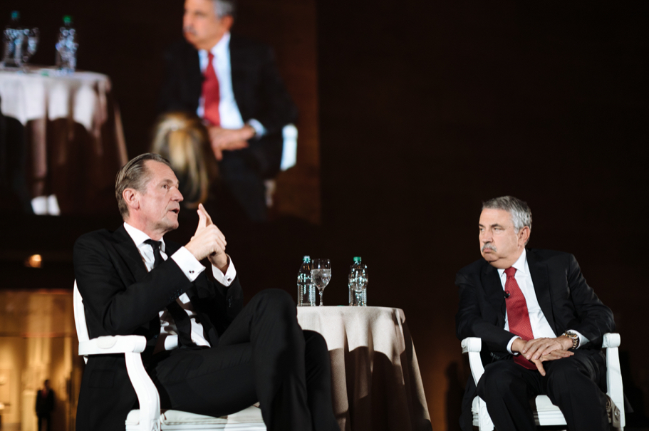 Following welcoming remarks delivered by American Academy chairman Gahl Burt, two conversations addressed pressing topics facing the transatlantic community. In the first, New York Times columnist Thomas Friedman discussed the global world order with Henry Kissinger, a founding chairman of the American Academy. In the second, Friedman and Academy trustee Mathias Döpfner, CEO of Axel Springer SE, addressed the digital world order. (An article about both discussions appeared the next day in Handelsblatt and Die Welt. An article on Bloomberg appeared on November 30.)