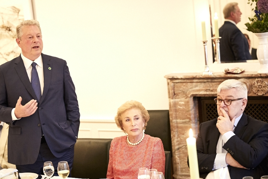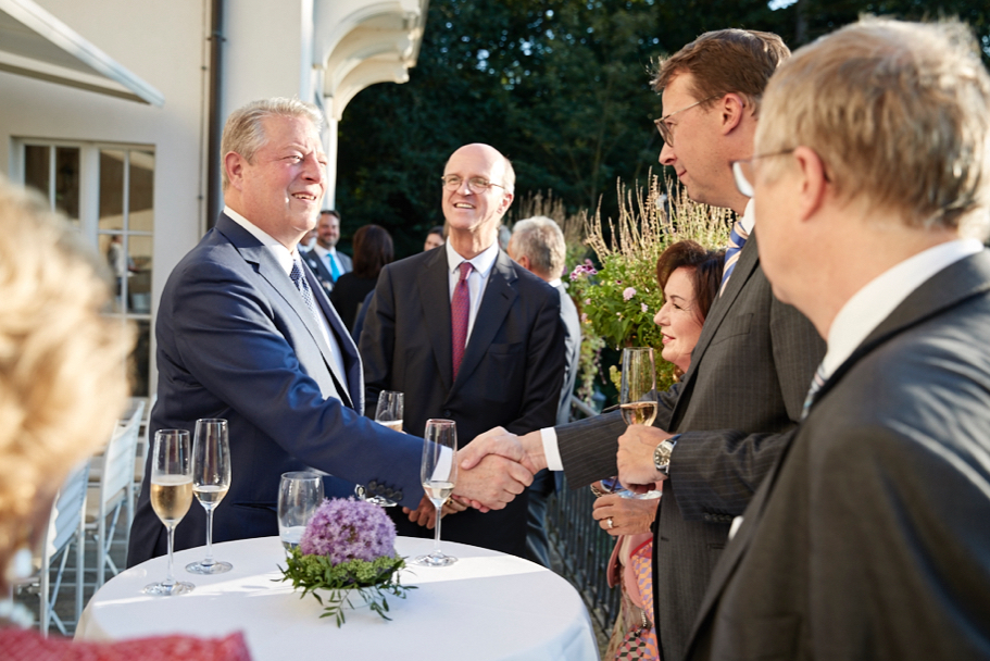 On the evening of August 7, the American Academy in Berlin hosted a reception and dinner for former-US vice president Al Gore, who was in Berlin for the European premiere of his film An Inconvenient Sequel: Truth to Power. The film was screened for 800 guests at Zoo Palast the following night, followed by a panel discussion, moderated by Dirk Steffens of ZDF, with Mr. Gore, Academy co-secretary John C. Kornblum; actor Hannes Jaenicke; head of the World Wildlife Fund Germany, Eberhard Brandes; and Barabara Hendricks, Federal Minister for the Environment, Nature Conservation, Building and Nuclear Safety. The screening and discussion were organized by Paramount Germany, in partnership with the environmental ministry, WWF Germany, and the American Academy.