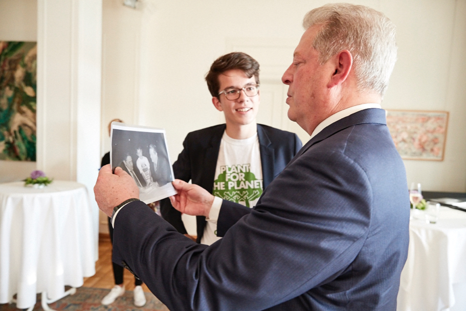 The private dinner at the Academy on August 7—highlighted by a screening of the film’s trailer and a discussion of pressing environmental issues—included, among a dozen additional guests, trustees John Kornblum, Nina von Maltzahn, Volker Schlöndorff, and Christine Wallich; Sandra Breka of the Berlin office of the Bosch Foundation; founder of Plant-for-the-Planet, Felix Finkbeiner; former German foreign minister Joschka Fischer; co-managing directors of Paramount Germany, Tobias Riehl and Florian Ritter; David Mike Reinert from the US Embassy; Rita Schwarzelühr-Sutter and Jochen Flasbarth, from the German Federal Ministry for the Environment, Nature Conservation, Building and Nuclear Safety; and Konstantin Mettenheimer, whose generosity helped to make this evening possible.