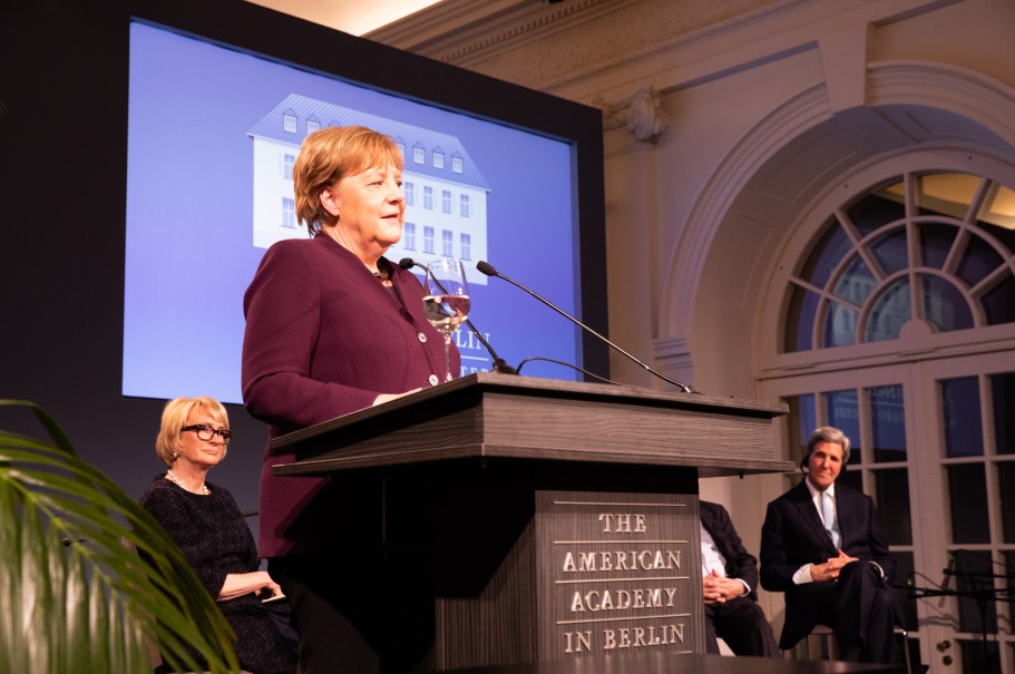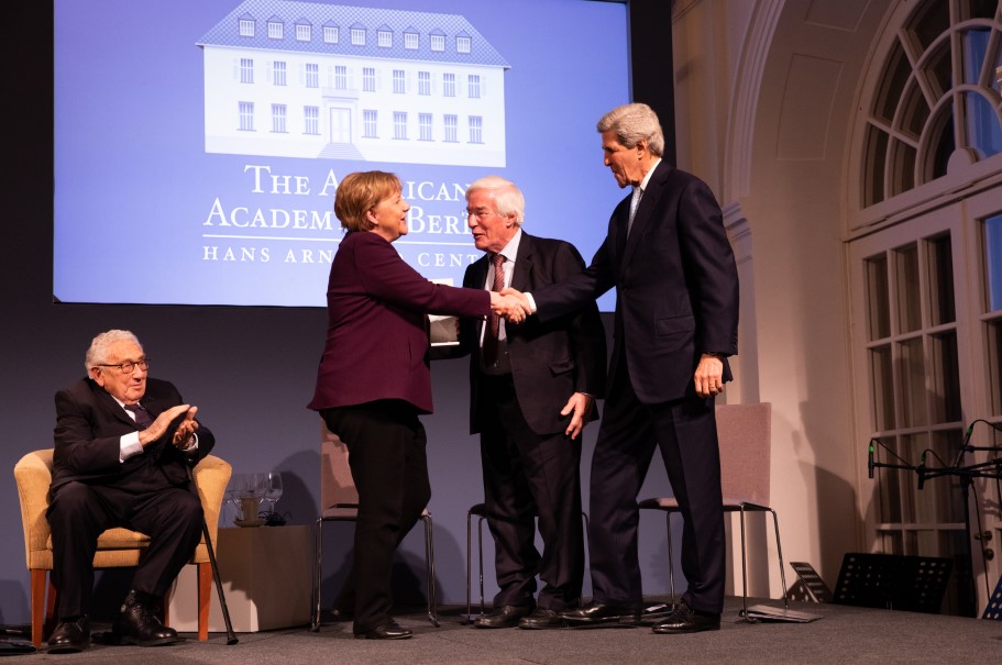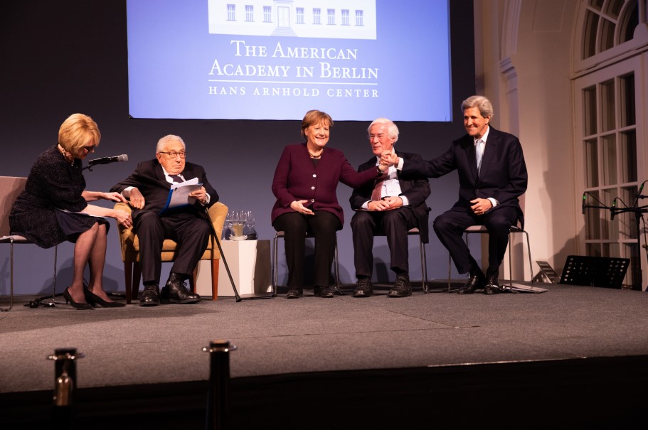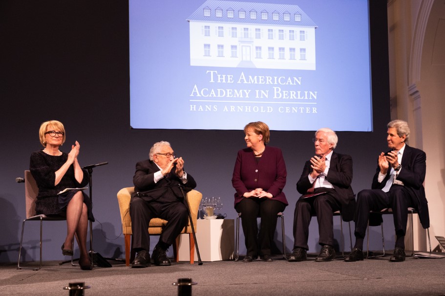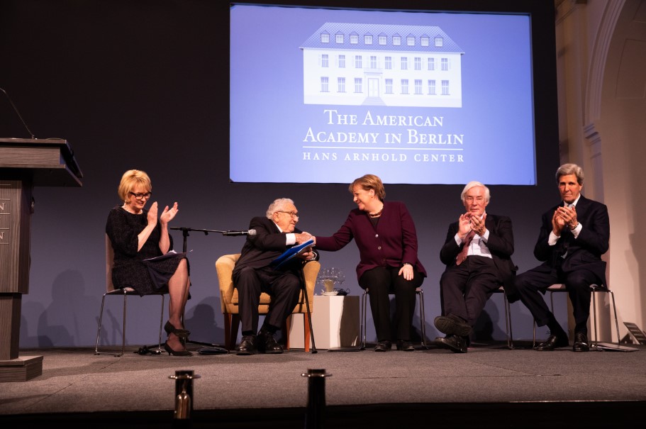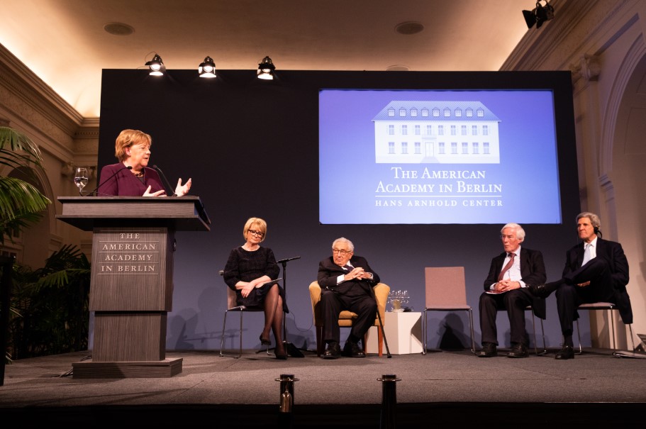 Since 2007, the Henry A. Kissinger Prize has been awarded annually to a renowned American or German figure in the field of international diplomacy. This year, the American Academy in Berlin is proud to have awarded the Henry A. Kissinger Prize to Chancellor Angela Merkel. Remarks were delivered by former Secretaries of State Henry A. Kissinger and John F. Kerry, and, by video message, former US President George W. Bush. Past recipients of the prize include Chancellors Helmut Schmidt and Helmut Kohl, President George H.W. Bush, and Senator John McCain.