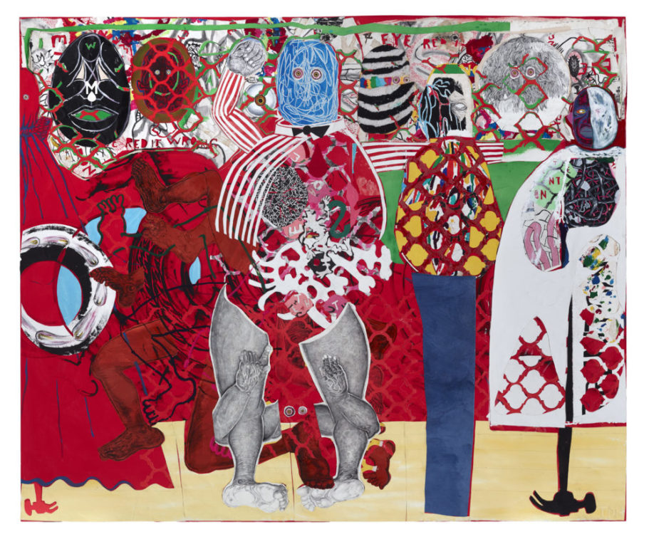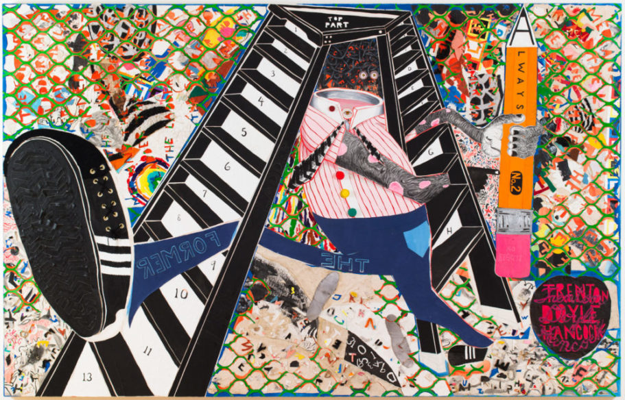 Several of my recent works closely mirror key scenes from the film, such as the small grisaille paintings The Letting, Concerto, and Head Tread, and have a distinct filmic quality. Another trio of paintings, 8-Back Icon Series: Torpedoboy, 8-Back Icon Series: Bringback, and 8-Back Icon Series: Trenton Doyle Hancock, serve as models of toys that I must produce, an outcome of my transformation to a Bringback, and nod to my love of toys and packaging of toys made in the 1970s and 1980s.