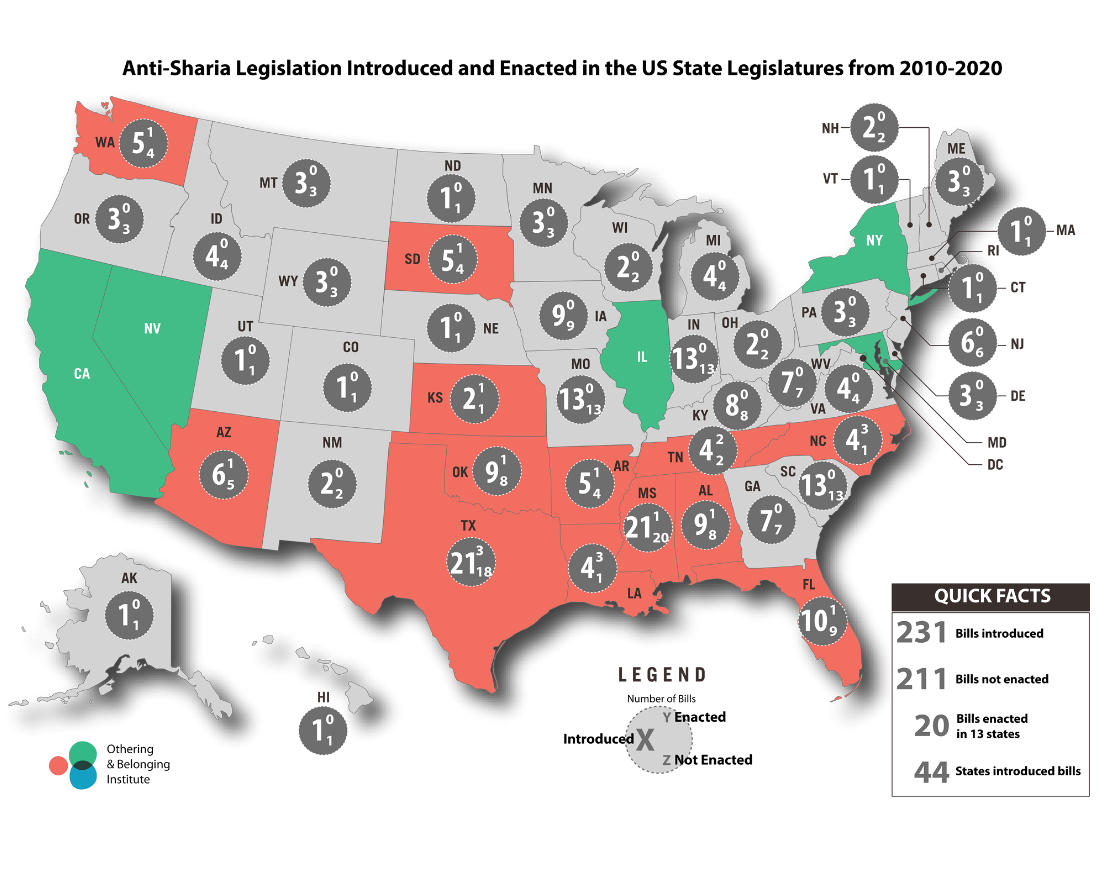 Anti-Sharia Bills Introduced in the US, 2010–20 Source: UC Berkeley Othering and Belonging Institute