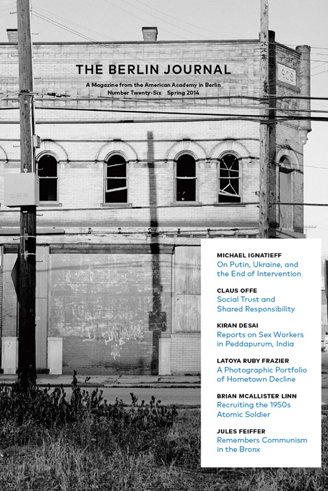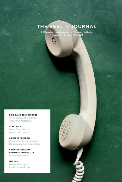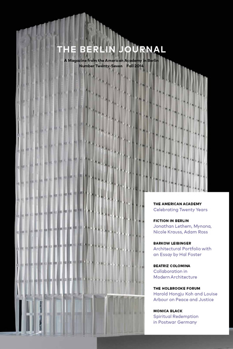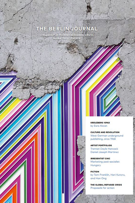 This issue of the Berlin Journal (#33) opens with a suite of related essays on the fragility and composition of democracy: Daniel Ziblatt and Steven Levitsky from their new book, How Democracies Die; Steven Klein on the role of debt in the political economies of post-WWII democracies; and Laura D’Andrea Tyson on how Germany is successfully navigating the automation of its industrial sector. Writer Adam Ehrlich Sachs offers a story of related metaphorical portent, about a blind astronomer who predicts a solar eclipse, and Suki Kim reports from inside the world’s darkest regime, North Korea. The 2019 Andrew W. Mellon workshop “Double Exposures” occassioned essays by Rosalind Morris, Natacha Nsabimana, and Yvette Christiansë, on the past and present of “extraction” from the African continent, physical and moral, and Miriam Ticktin offers a timely reflection on walls and immigration. Short stories by Angela Flournoy and Paul La Farge allude to slavery’s deep echo into the suburban present, as epitaphs and apparitions. European literary history forms another cluster of interest, with Azade Seyhan on Heinrich Heine; Tatyana Gershkovich on Vladimir Nabokov; and in Veronika Fuechtner’s interview with novelist Frido Mann. Finally, Liliane Wiessberg offers an entertaining foray into the history of the postcard. Plus, an artist portfolio by Renée Green, book reviews, and news from the Hans Arnhold Center. (Cover artist: Betsy Brandes)