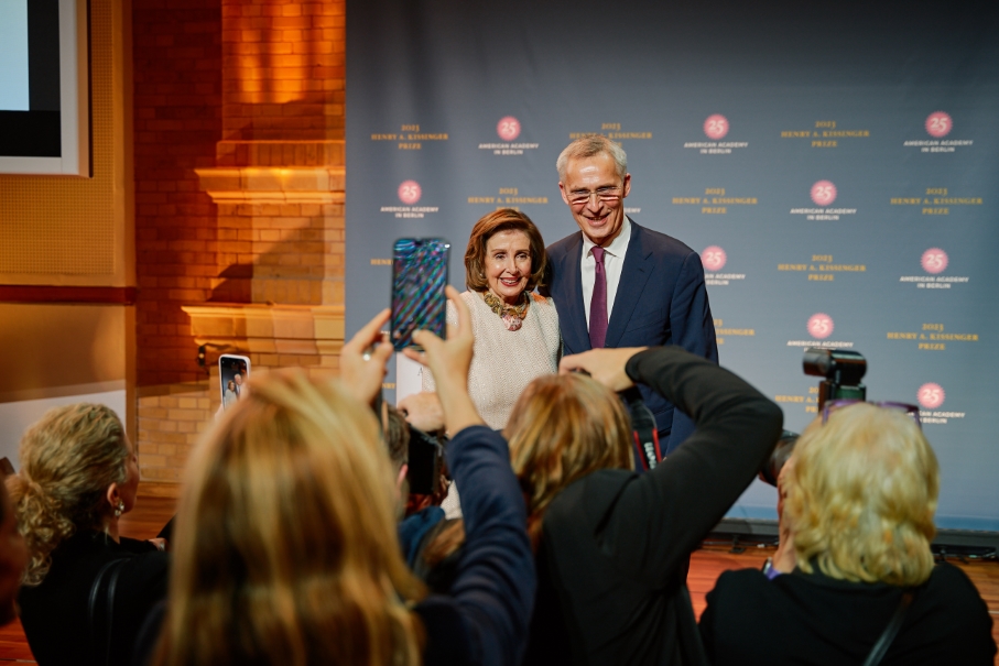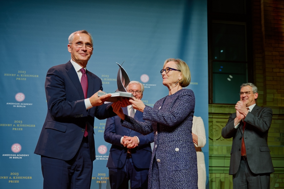 On the evening of Friday, November 10, at the Deutsche Telekom’s Berlin Representative Office, the American Academy in Berlin awarded the 2023 Henry A. Kissinger Prize to Jens Stoltenberg, Secretary General of the North Atlantic Treaty Organization, for his outstanding contributions to the transatlantic partnership. Stoltenberg’s commitment to the Atlantic Alliance, Norway, and the international community is beyond measure, having served as Prime Minister of Norway for nearly a decade, following two ministerial posts, and now his tenth year as Secretary General of the North Atlantic Treaty Organization. It is for this current position in particular that the American Academy recognized the historic role Stoltenberg has played in rallying NATO members to support Ukraine in its fight against Russian aggression. In addition to his work for the defense of freedom in Ukraine, the Secretary General has demonstrated remarkable diplomatic skill and resolve during multiple rounds of NATO-membership enlargement. For these accomplishments and his tireless efforts in sustaining and strengthening our community of democracies and advancing its core values, the American Academy is proud to award Jens Stoltenberg with the 2023 Henry A. Kissinger Prize.