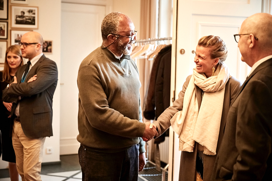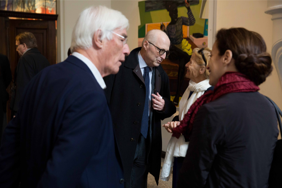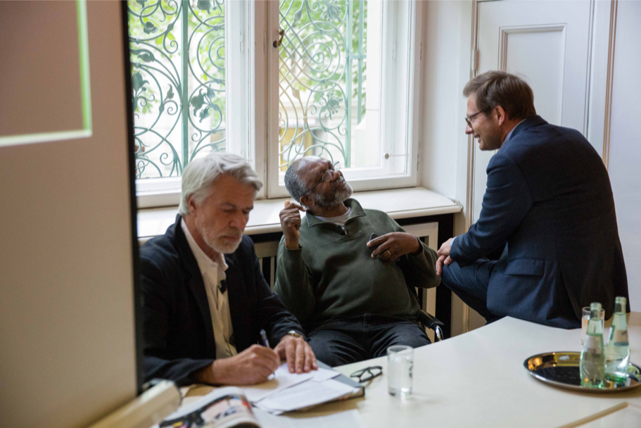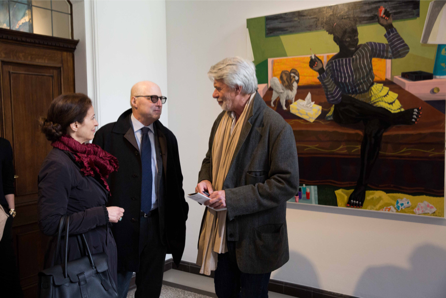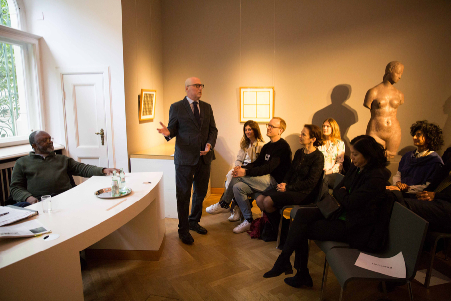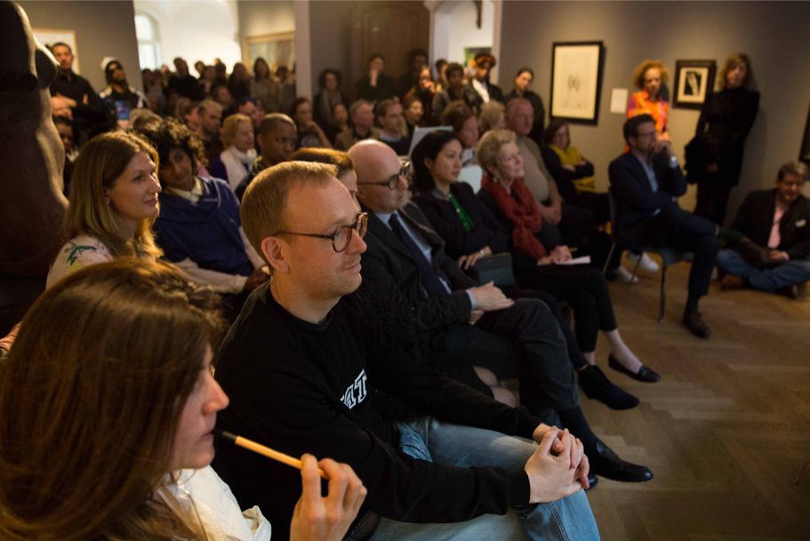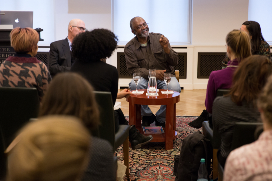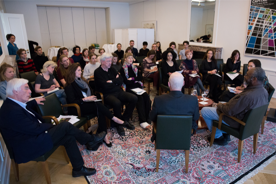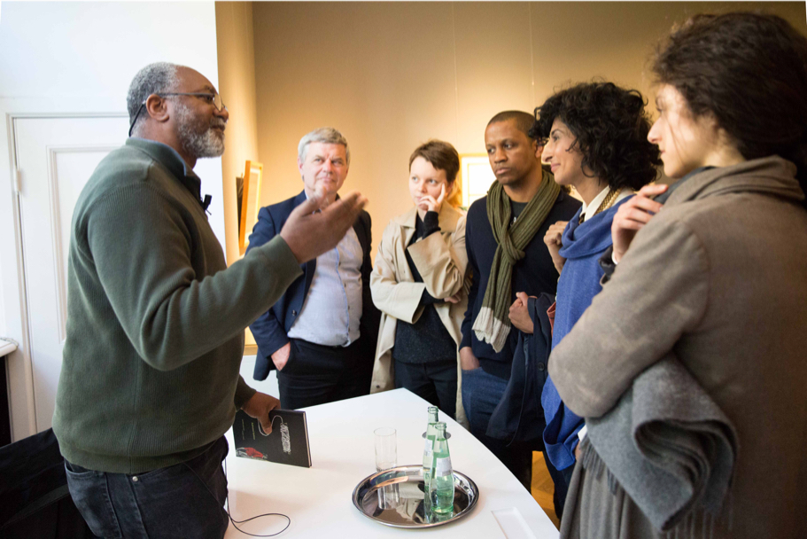 Kerry James Marshall was an inspiring first Max Beckmann Distinguished Visitor. On April 21, he led a master class at the American Academy, with art students from Bard College Berlin, the Freie Universität, and the Universität der Künste; on April 26, he delivered a lecture to a private audience, including the visitorship’s key donors and Academy trustees, followed by a dinner in his honor. On April 27, he made a studio visit and gave a talk at the Universität der Künste, and on April 28 he sat down at the Villa Grisebach with Chris Dercon, former director of the Tate Modern, for a public discussion. Grisebach was a major force in making the Max Beckmann Distinguished Visitorship a reality, and on this occasion they exhibited two of Marshall’s recent works, generously loaned to the American Academy by gallerist David Zwirner.