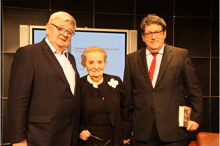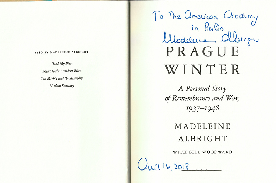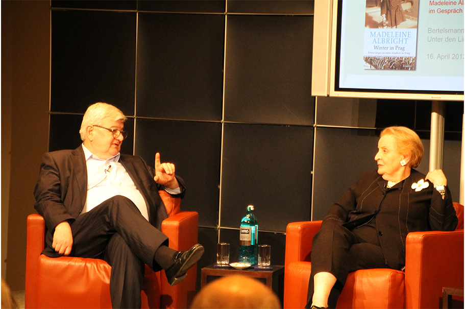 As is true for so many in the American foreign policy community, Madeleine Albright was a major figure in my life. In one of our last exchanges, she said how much she admired the work of the Academy and how glad she was that I was working there. She last joined the Academy in fall 2013, for the German translation of her memoir Prague Winter: A Personal Story of Remembrance and War, 1937-1948, published by Bertelsmann as Winter in Prag: Erinnerungen an meine Kindheit im Krieg (2013). She spoke at the Bertelsmann Stiftung with former German foreign minister Joschka Fischer and then-Academy executive director, Gary Smith.