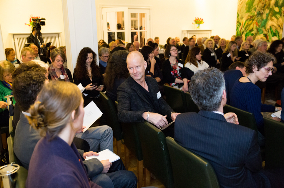 On the evening of Thursday, January 18, 2018, the American Academy welcomed its fortieth class of fellows to the Hans Arnhold Center. Following welcoming remarks by Stephan-Andreas Casdorff, editor-in-chief of Der Tagesspiegel, the spring 2018 class briefly presented each of their projects—ranging from a history of medieval Lampedusa to studies of the Arab anti-sectarianism, from the sounds of migration to the perennial crisis of the humanities. The spring 2018 class will be in residence until June 2018. Learn more about each of the fellows and their projects here.